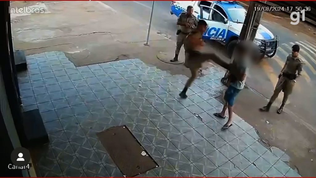 Caso de agressão aconteceu em Guaraí, em agosto deste ano, na frente de distribuidora onde garçom trabalhava. Poema utilizado por juiz foi escrito durante o período em que o Brasil esteve sob ditadura militar. Vídeo mostra policial chutando homem em frente a distribuidora que trabalhava