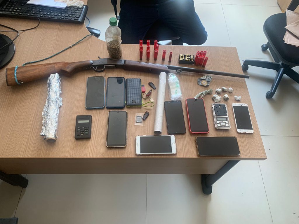 Como os suspeitos foram apreendidos uma espingarda, munições e cartuchos intactos, além de porções de crack, maconha, balança de precisão e vários celulares.