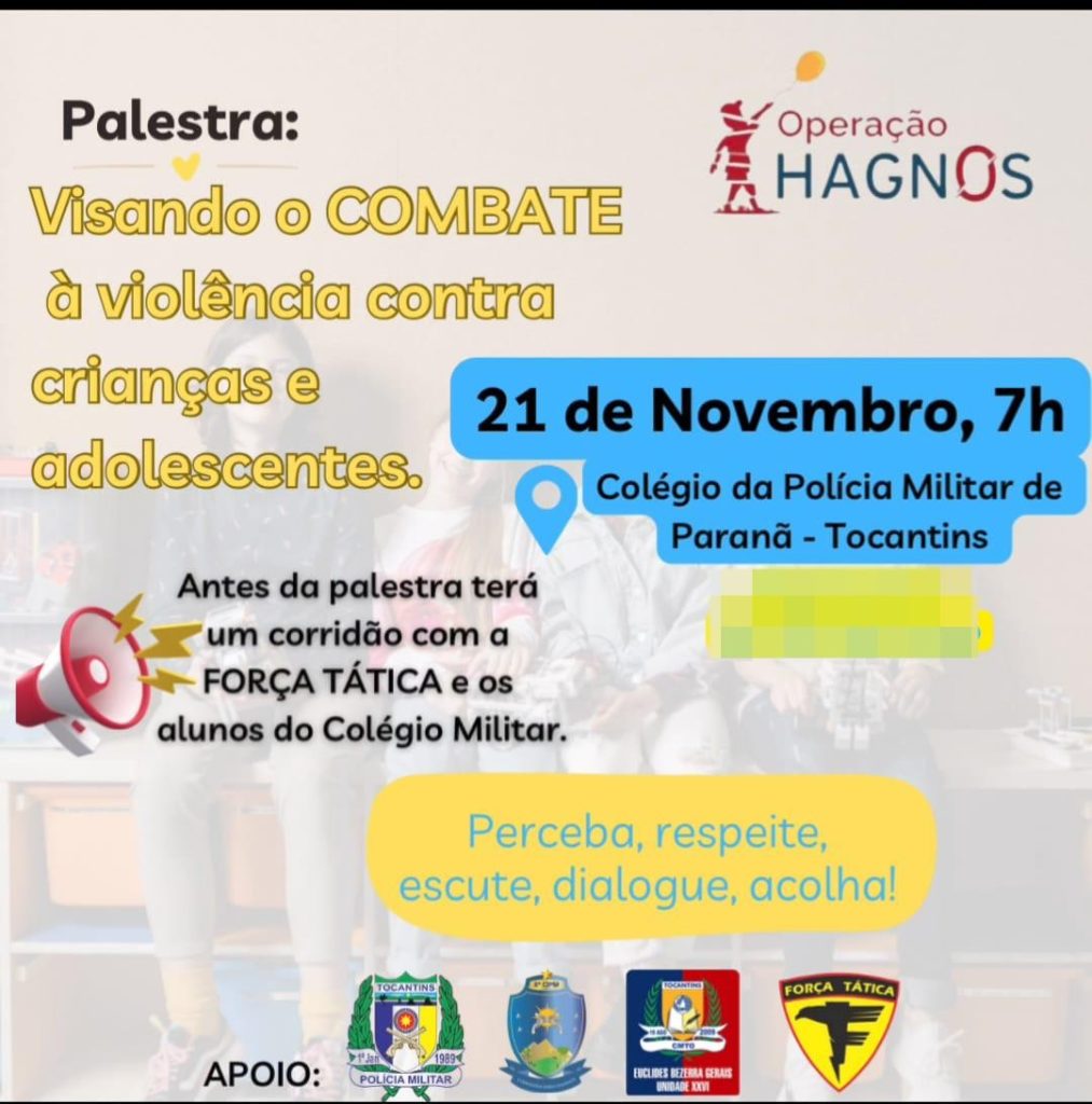 A informação foi repassada por uma servidora que preferiu não se identificar e também divulgada em um grupo de WhatsApp interno da escola. A ação no Colégio Militar estava dentro da Operação Hagnos, realizada por forças de segurança e promoveu ainda a palestra ‘Visando o COMBATE à violência contra crianças e adolescentes’. (Veja na imagem abaixo)
